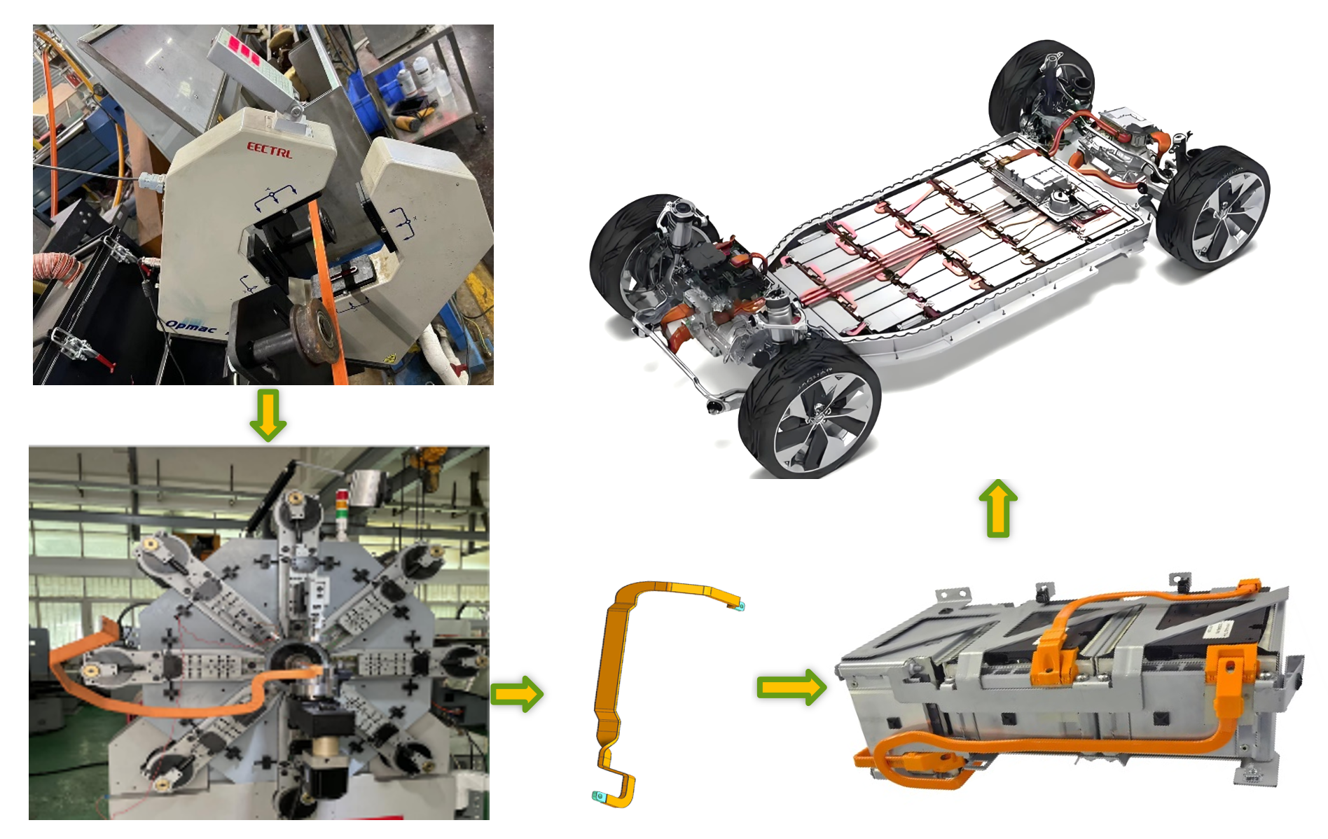 3D bending extruded copper/ aluminum bar: connecting bar for NEVs, which has the characteristics of high conductivity, easy bending, and shock resistance. The automatic 3D bending machine can produce faster and simpler than traditional busbar. It meets the requirements of high quality and low cost for NEV power connection and suitable for mass production.